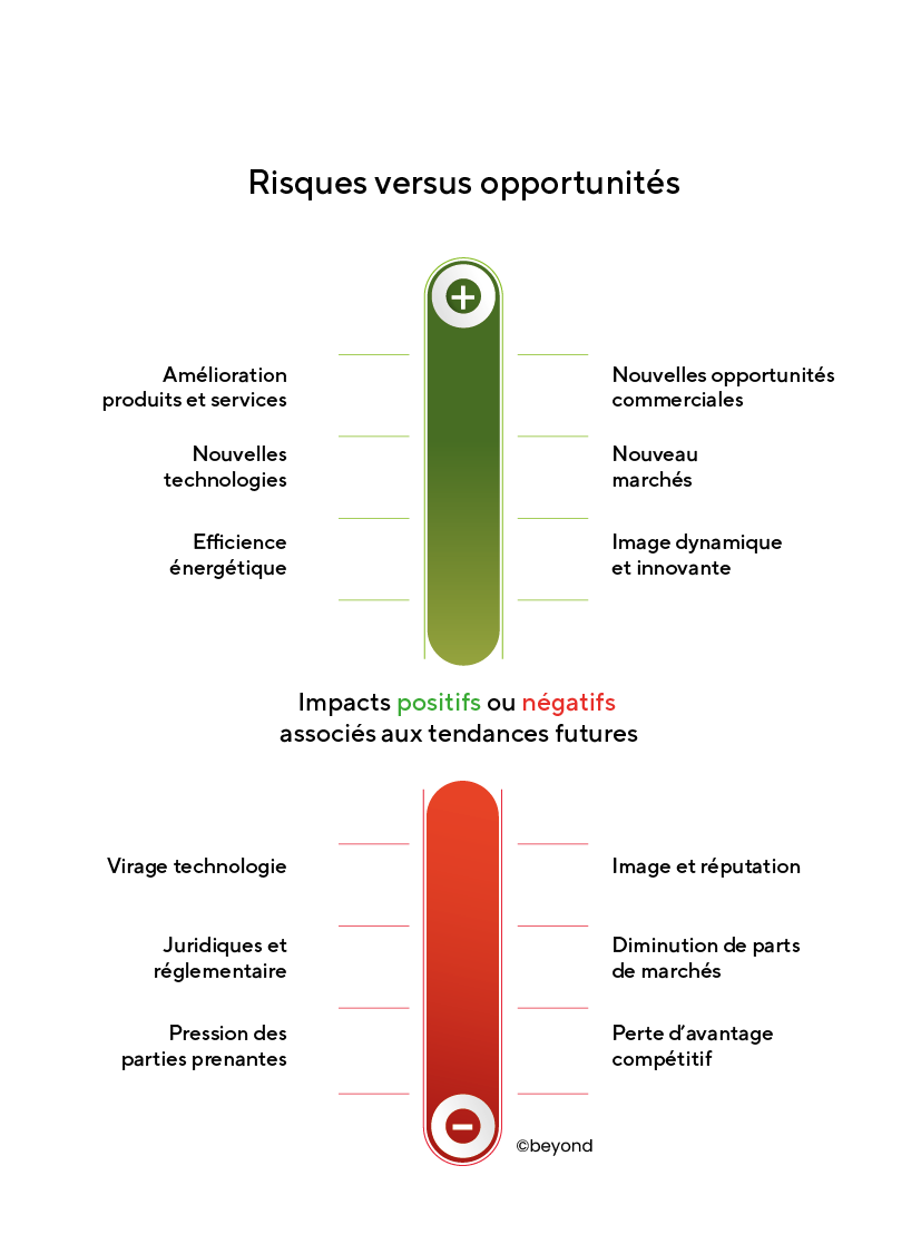 Pour que votre organisation soit plus performante, nous vous conseillons également en matière de stratégie. Notre démarche consiste à confronter votre stratégie à votre profil de risque. Des événements et incidents inattendus entraînent souvent l’échec des stratégies. Mais les risques identifiés à temps peuvent aussi représenter des opportunités. Grâce à l’anticipation stratégique et à la cartographie d’innovation, nous vous aidons à identifier ces opportunités et à les prendre en compte dans votre stratégie. Si ces opportunités impliquent des changements organisationnels importants, nous vous soutenons également, vous et votre équipe, dans la gestion du changement.